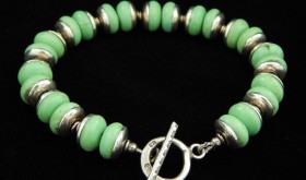 by Melodee Vandenbosch. (Stafford, Virginia USA) This piece is simply strung with “green turquoise” – my ebay win, which is most likely dyed howlite. That’s the “oops” and lesson learned. I loved the color anyway, so made a bracelet with sterling silver end caps and and sterling silver toggle clasp. I think this is one … Continue reading An Ebay “Oops”