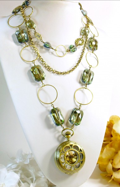 This necklace hangs quite low with high grade brass and Chinese crystals.