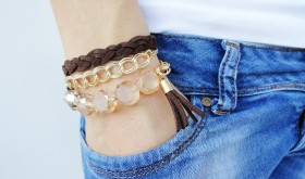 by Hande. (Istanbul) I think I am getting used to winter since i start creating something not neon and colorful 🙂 I am sure this bracelet is gonna rock this year! This bracelet was formed by 3 parts; first is braided suede, gorgeous beads in the middle and gold plated chain for the last part. … Continue reading Fancy Fall Bracelets